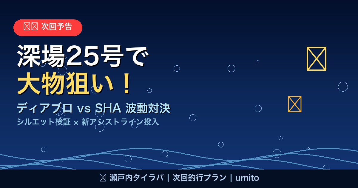 【次回釣行プラン】瀬戸内の深場を攻める!25号シンカー×ディアブロ vs SHA波動対決&新アシストライン投入🎣